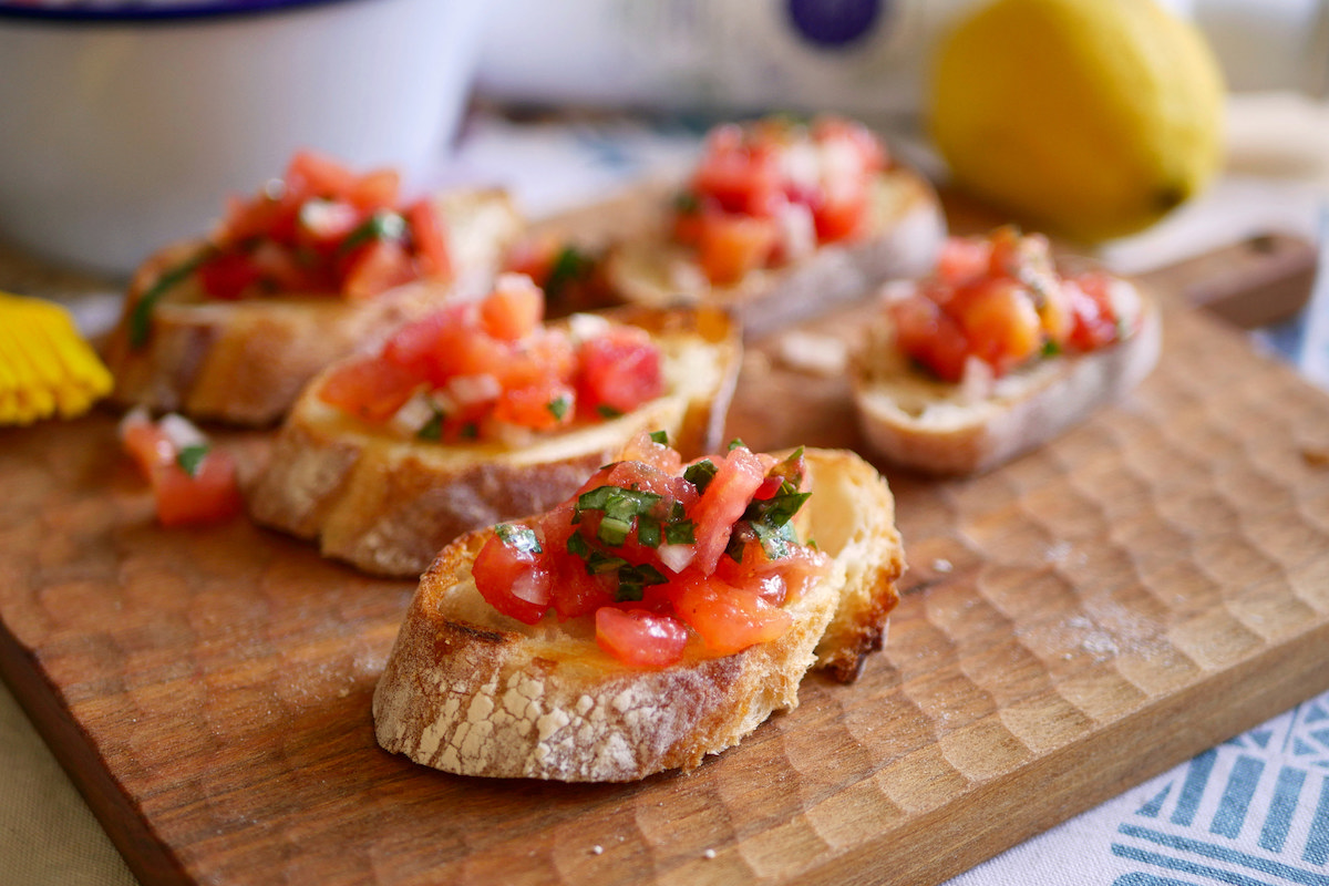Bruschetta 的備料十分簡單,而且製作過程一點也不費工;它主要的材料有兩個主要元素:番茄跟法國麵包,但與番茄搭配的佐料其實可以隨興變化,好比不愛大蒜的話,可用洋蔥取代大蒜;手邊沒有巴薩米克醋則不妨以新鮮檸檬汁取而代之。