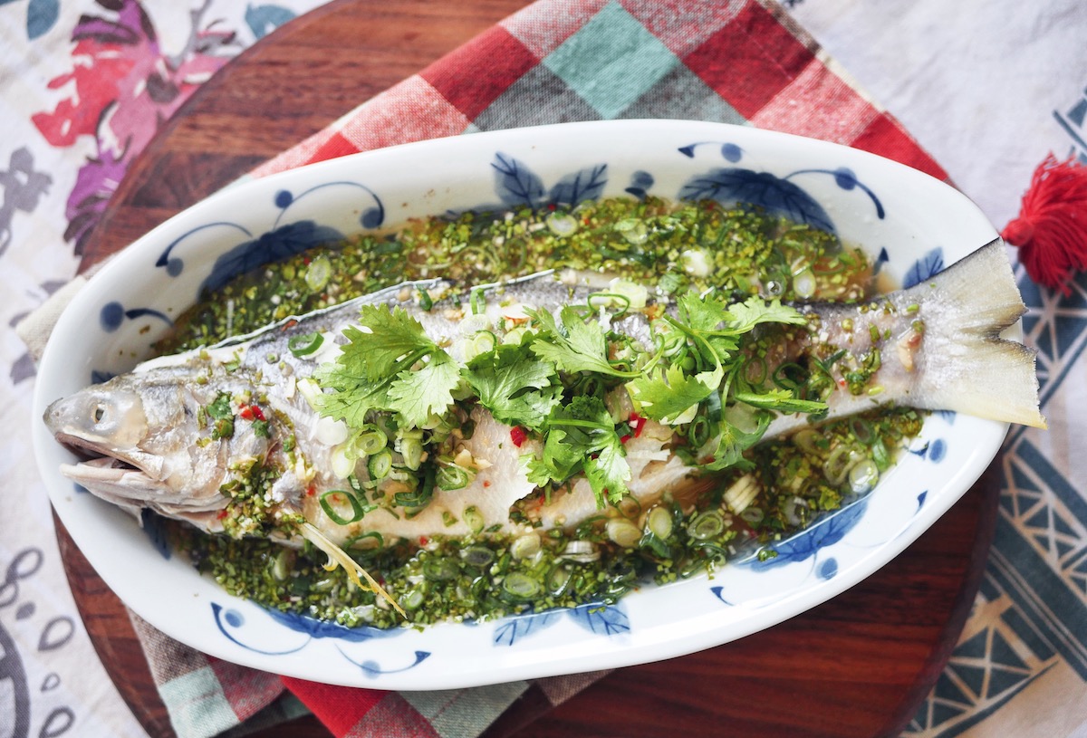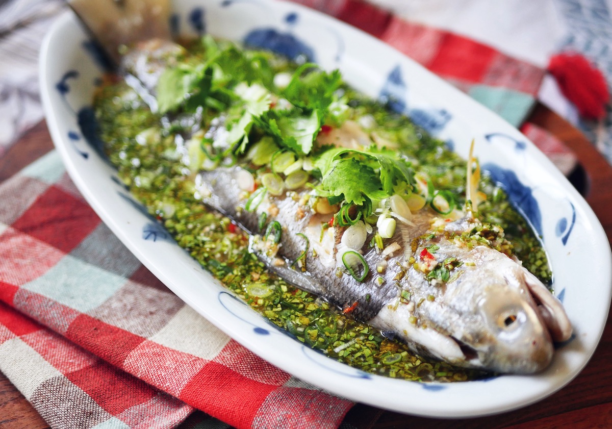 叫作 Pla Neung Manao (ปลากะพงนึ่งมะนาว),