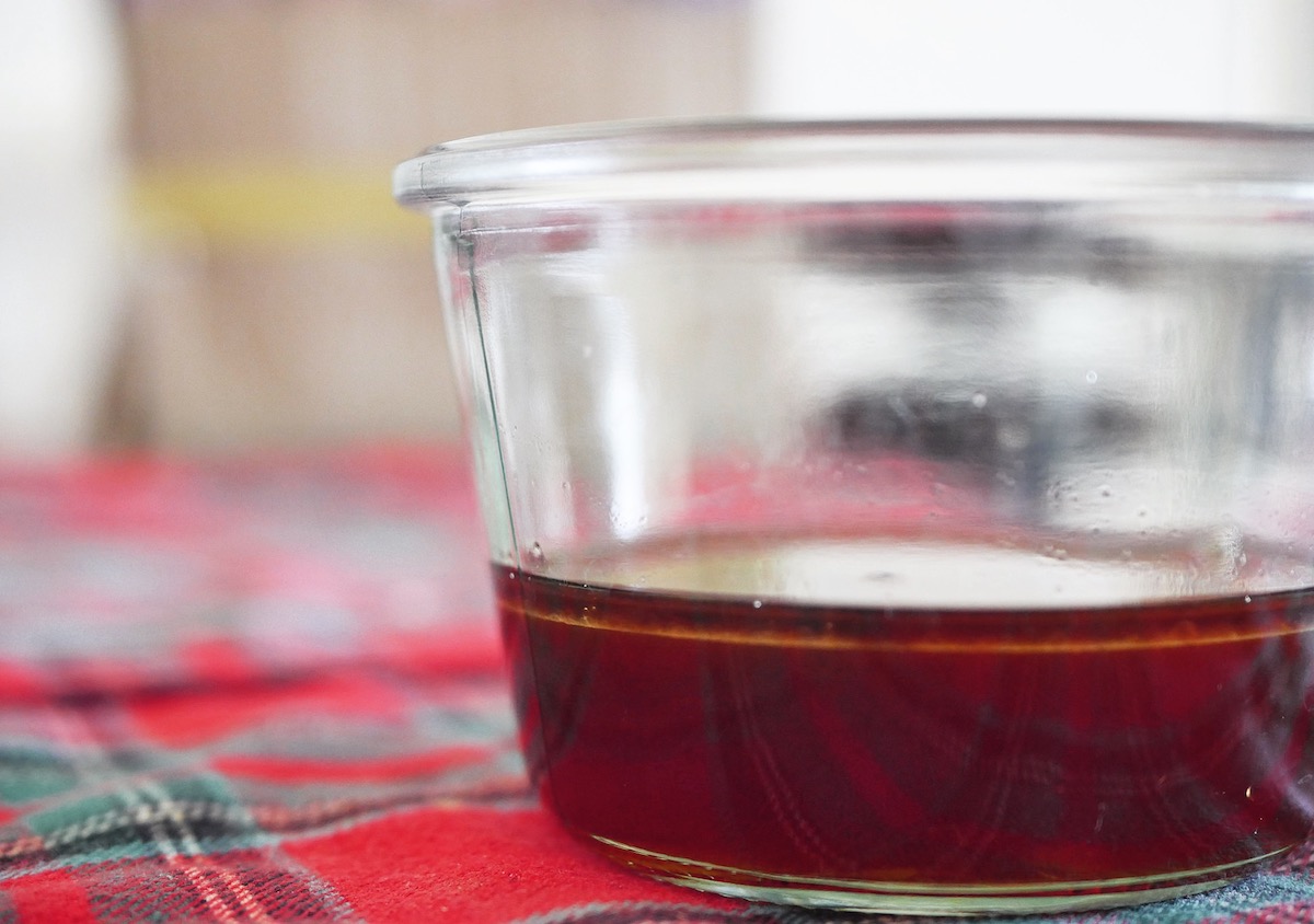 - 炒糖色 起油鍋開中小火,放入油、再倒入冰糖,用鏟子攪動直到糖都融化,顏色由淺褐變成棕色並起泡泡時,加入準備好的熱水,這時要小心因為溫度很高,水倒入會糖水會在鍋裡熱烈翻騰,但一下就緩和下來,用鍋鏟攪勻後就可以關火,把熱好的糖水倒入碗中備用。